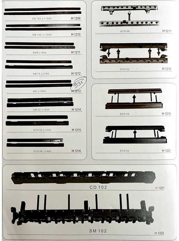 e. Gripper bars and gripper finger: Heidelberg’s gripper bars and gripper fingers are used to hold the paper or other material in place during the printing process, ensuring that the paper or material is fed correctly through the press.